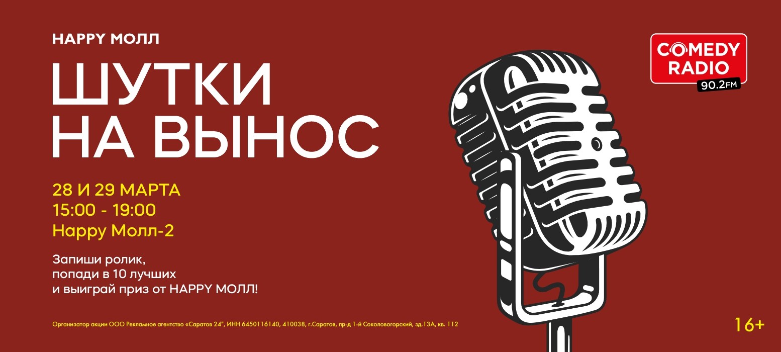 Твои шутки будут опубликованы в сообществе ВК «Саратов 24» и HAPPY МОЛЛ. Смотри на себя и друзей!